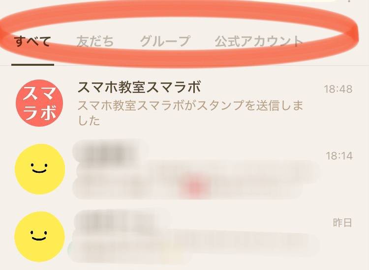 オンにすると、トーク一覧の上に“分類タブ”が現れます。